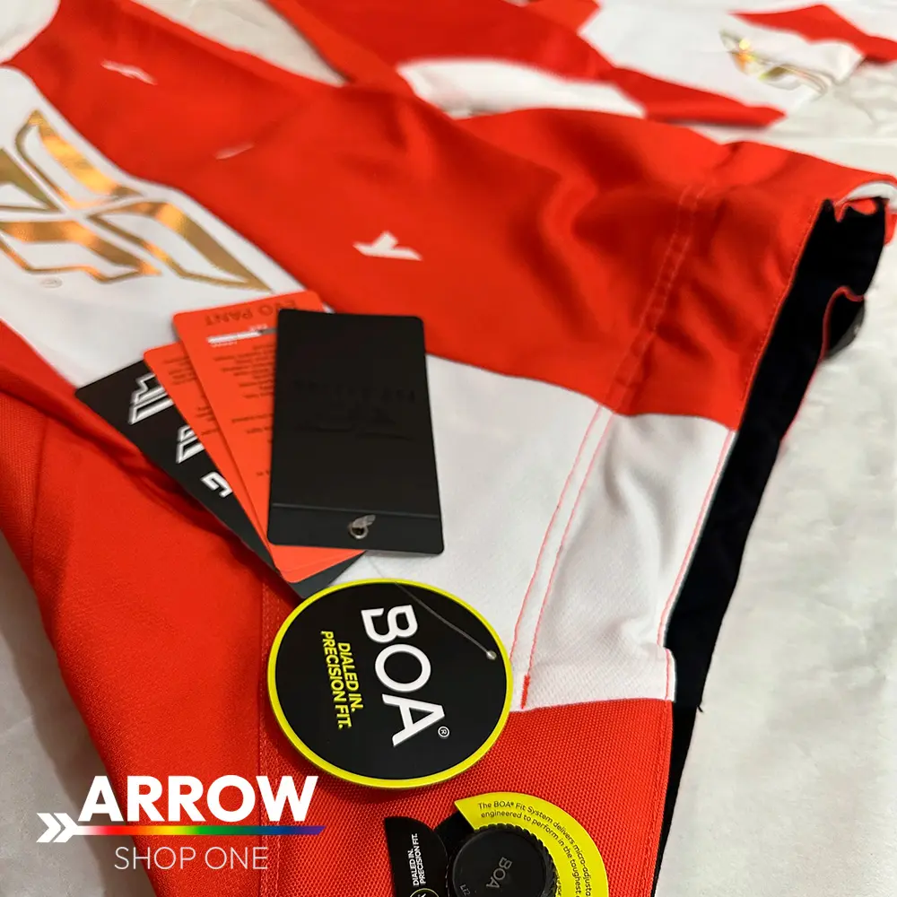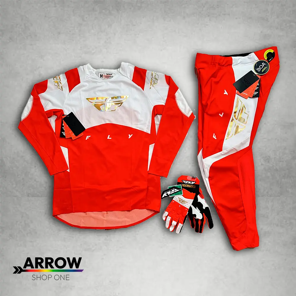 Conjunto de competición de alto rendimiento, confeccionado en tejido elástico DST para máxima movilidad y resistencia. Incorpora ajuste BOA® en la cintura, paneles de cuero genuino en las rodillas para protección térmica y durabilidad, y diseño ergonómico precurvado. Ofrece ventilación estratégica con paneles de malla y perforados. El jersey es ligero, elástico, con ajuste atlético, gráficos sublimados y banda de silicona en la cintura. Incluye guantes a juego.
